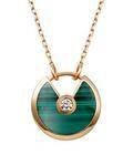 Amulette de Cartier系列珠宝,以珍稀宝石雕琢开启幸运的护身符,守护她时刻被幸运围绕。珍贵而精致的护身符轻轻摇曳,斑斓剔透。对比鲜明的材质与圆润光滑的曲线相映成趣,简约而不失优雅。寓意好运和希望的孔雀石开启期许中的爱情。