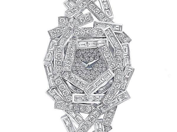 设计师交替使用圆形钻石和长方形钻石,错落镶嵌构成表壳轮廓,钻石线条之间的缝隙让整枚表更为轻盈灵动。
