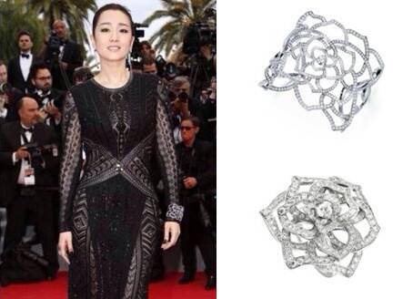 巩俐的此次"归来",可谓风姿不减。一袭黑色Roberto Cavalli 2014春夏系列蕾丝长裙,大方露出性感背部,腕间佩戴的是Piaget伯爵高级珠宝系列:Rose系列手镯、Rose指环,不得不说,作为伯爵代言人的巩俐,把伯爵高级珠宝演绎地异常美丽堪称完美之至!