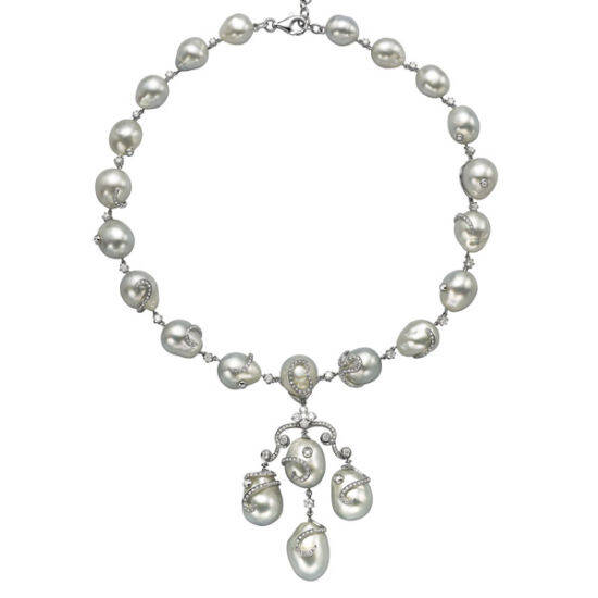 5.异性珠:除圆珠、椭圆珠、玛比珠以外的其他形态各异的珍珠也为数不少,梨形、水滴形、米形、土豆形、也可称作巴洛克珍珠。