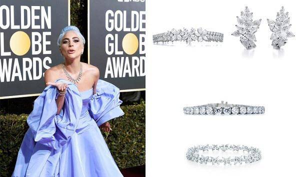 造型师Sandra Amador 及 Tom Eerebout表示︰"特别为Lady Gaga 而设计的Tiffany Aurora项链与她华丽的裙子相衬。金球奖是Lady Gaga今年出席的首个颁奖典礼,绝对是一个重要的时刻,所以我们希望珠宝与晚礼服能相互辉映。Tiffany精致唯美的珠宝以黎明曙光女神及闪烁的群星而命名,完美映衬Lady Gaga 所主演的电影 《一个明星的诞生》(A Star is Born)。"