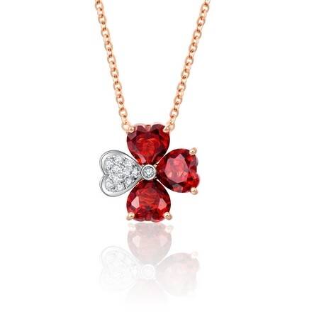 在浓情蜜意的节日里,ENZO还将为您带来更多表达情感的选择。代表甜蜜爱情的Hard Candy水果糖系列及为您带来好运的Clover四叶草系列也为2019情人节推出了心形玫瑰石榴石限量款珠宝。精致的18K金镶嵌钻石骨架,玫瑰石榴石经典的心形造型,鲜艳而又饱和的颜色,精致的让珠宝替你说出心中的蜜语甜言。