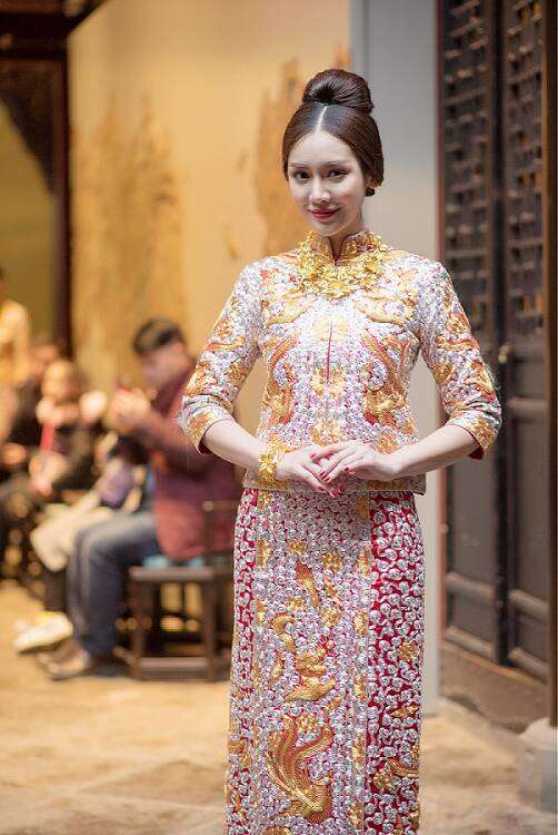 2月10日,在这个古色古香的谢家大院,周大福和北京故宫博物馆联手打造的"故宫文化珠宝"惊艳亮相;而褂皇重庆专卖店也带着"小五福"、"中五福""大五福"、"褂后"、"褂皇"五款龙凤裙褂齐齐出场,在模特的精彩演绎下,300多历史的的中式院落、精巧耀眼的中式珠宝和灿若云霞的中式裙褂,碰撞出美妙的火花。