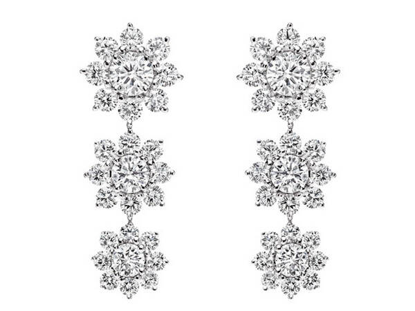 Sunflower Three Stone Drop EarringsHarry Winston 海瑞·温斯顿于1932年在纽约曼哈顿第五大道上创立第一家旗舰店,迄今近60年来,誉有「钻石之王」美称的